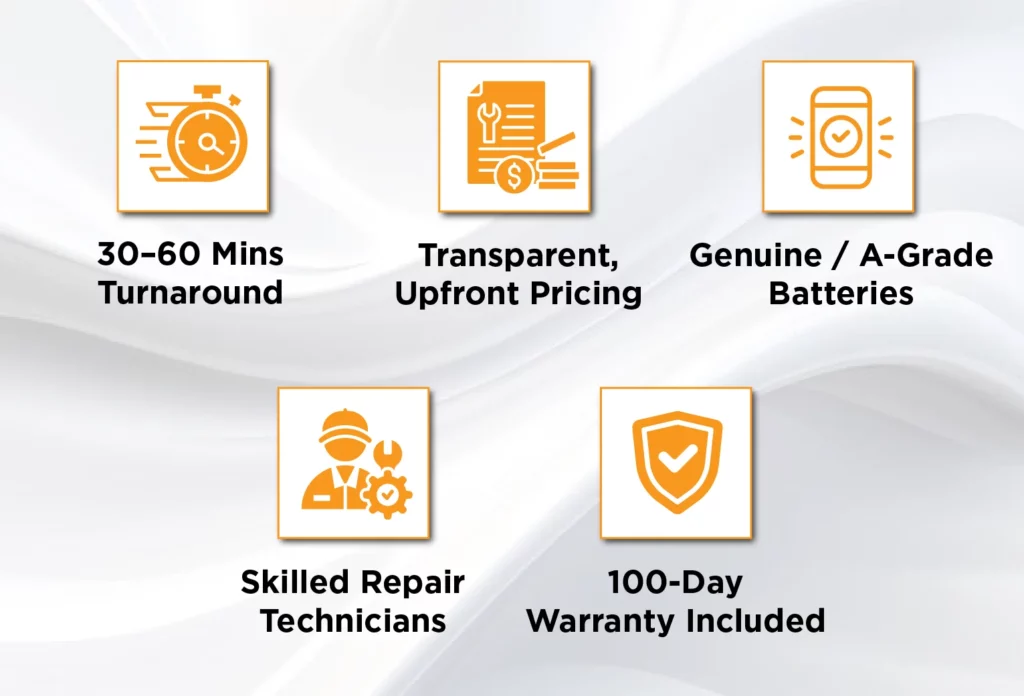 With fast turnaround times, clear upfront pricing, and warranty-backed repairs, you can be confident your iPhone is in safe hands. Whether you visit one of our branches or reach out online, we’re here to help restore your battery performance with minimal downtime.